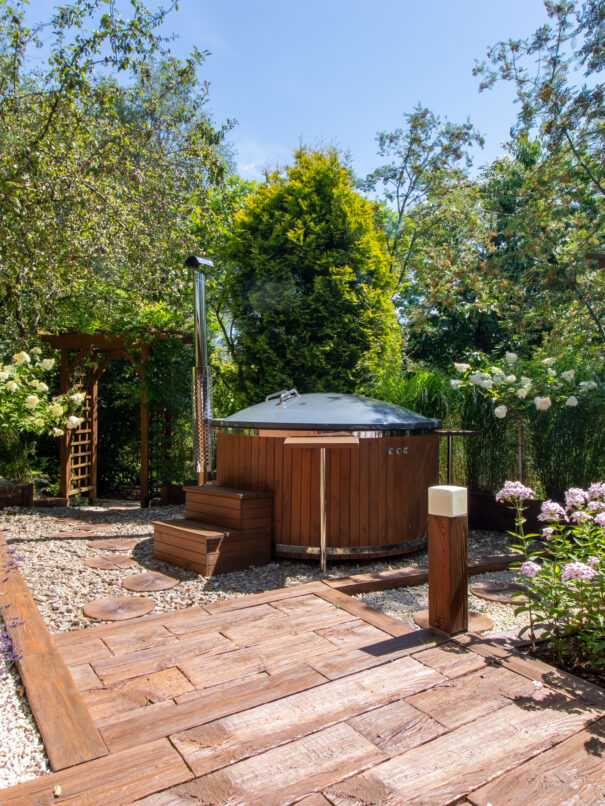Nasze nowoczesne jacuzzi znajduje się w ustronnej części ogrodu, co gwarantuje prywatność i spokój. Jest dostępne przez cały rok, więc możesz cieszyć się ciepłymi kąpielami zarówno w lecie, jak i w chłodniejsze dni. Zanurz się w bąbelkach, delektując się widokiem na piękny ogród i ciesz się chwilą tylko dla siebie.